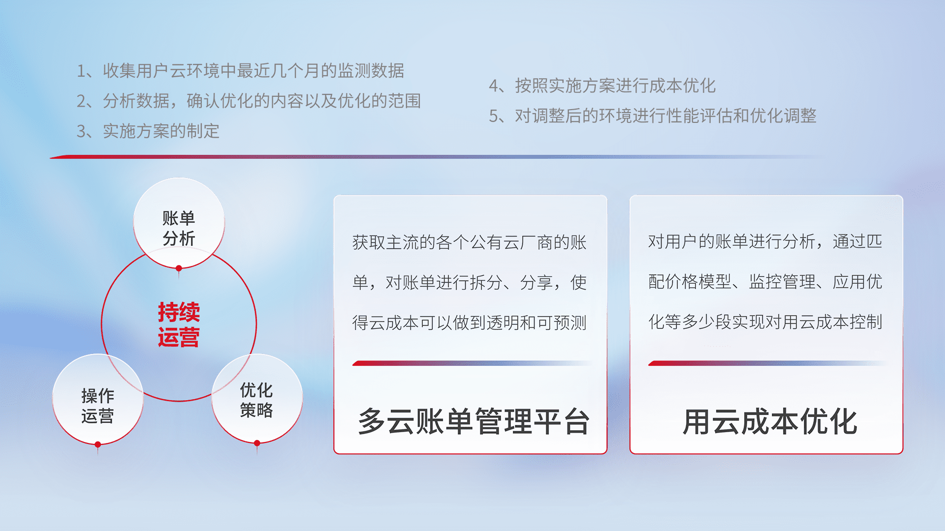 监控业务系统资源开销,,,,对资源的消耗精确计量,,,,实现费用的透明化管理,,不断提升资源使用率,,调整资源购买方式,,,降低资源费用成本,,,,用云成本可预测、、、用云费用可优化,,,,云资源配额有据可依。。